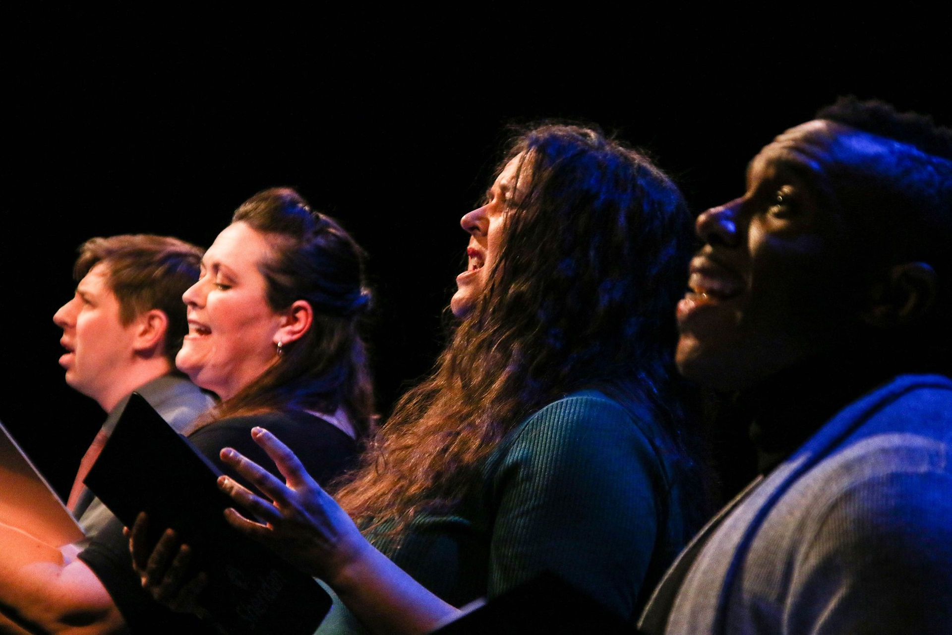 Photo: Resonate Photography. Performers Graeme Parke, Kathleen Arbour, Tricia Lackey and Stefan Keyes in Zucchini Productions' Confidential Cabaret at GCTC.